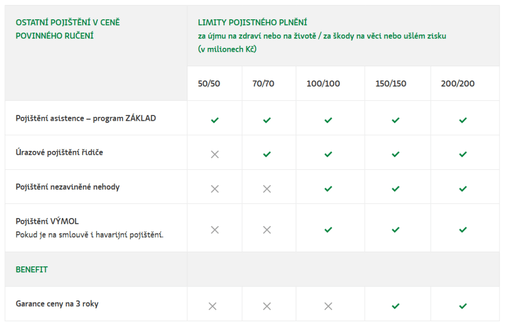 V rámci povinného ručení Kooperativa jsou zdarma k dispozici asistenční služby a úraz řidiče v ceně. Pojištění se vztahuje na situace, kdy řidič svým vozidlem způsobí újmu na zdraví nebo na životě, případně škody na věci nebo ušlém zisku.