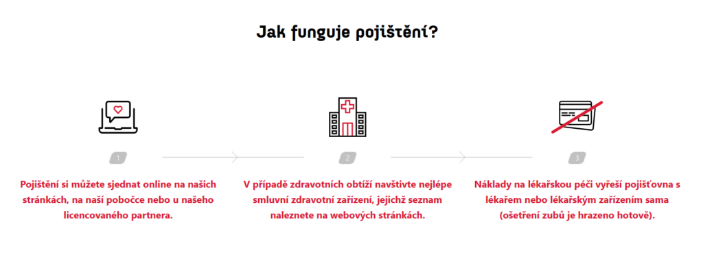 V rámci pojištění se cizinci mohou spolehnout na akutní lékařské ošetření, asistenční služby i předepsané léky v ceně pojištění, u akutního ošetření zubu je pak nastaven limit 5 000 Kč, přičemž se hradí hotově.