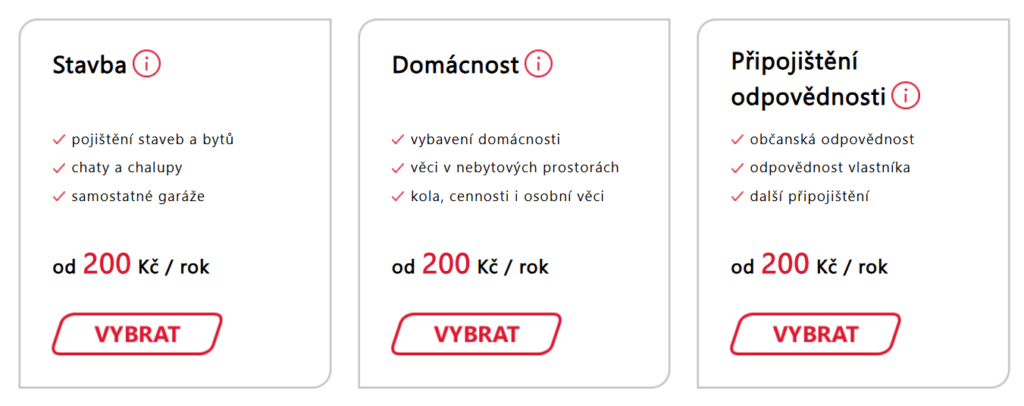 Pojištění kryje živelné pohromy (blesky, hromy, větry) a občanskou odpovědnost, zároveň nabízí asistenční služby až do výše 5 tisíc korun a zajistí náhradní ubytování až do výše 50 tisíc korun.