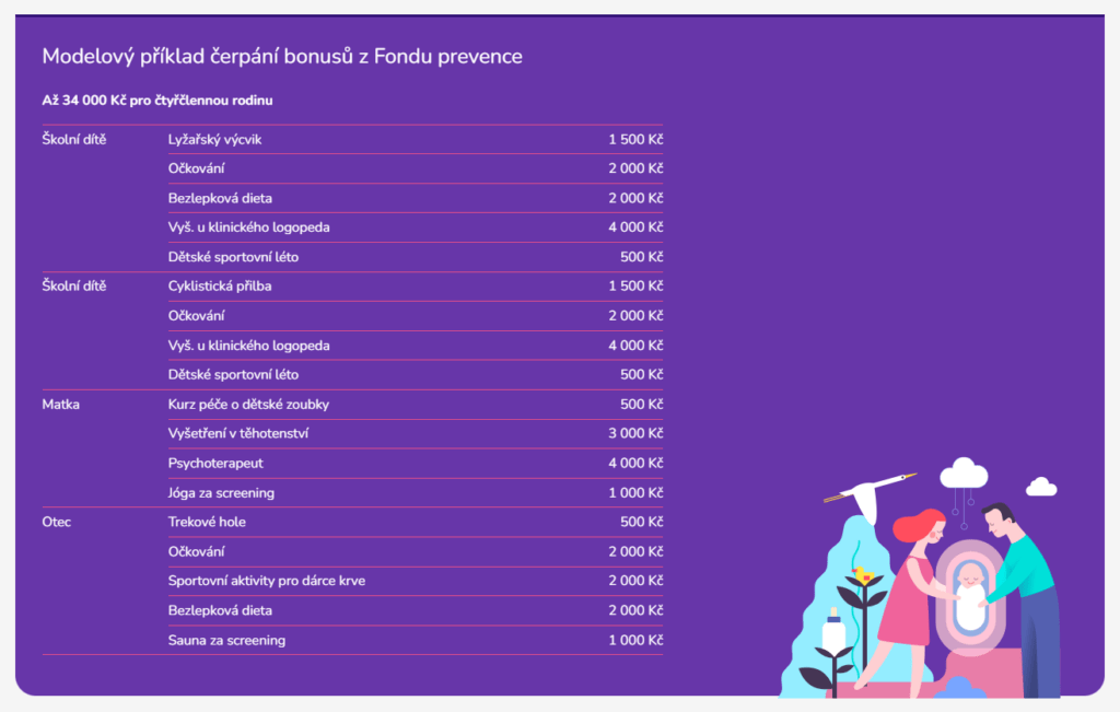 Například z Fondu prevence mohou rodiny čerpat až 34 tisíc korun na různé preventivní programy, ať už jde o program prevence onkologických onemocnění či bonusový program podpory duševního zdraví.