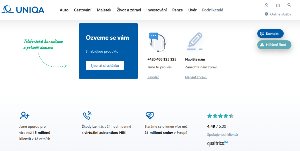 Klienti mohou pojišťovnu UNIQA kontaktovat prostřednictvím telefonního čísla zákaznické linky 488 125 125, e-mailu info@uniqa.cz nebo využít kontaktní formulář na webových stránkách pojišťovny.